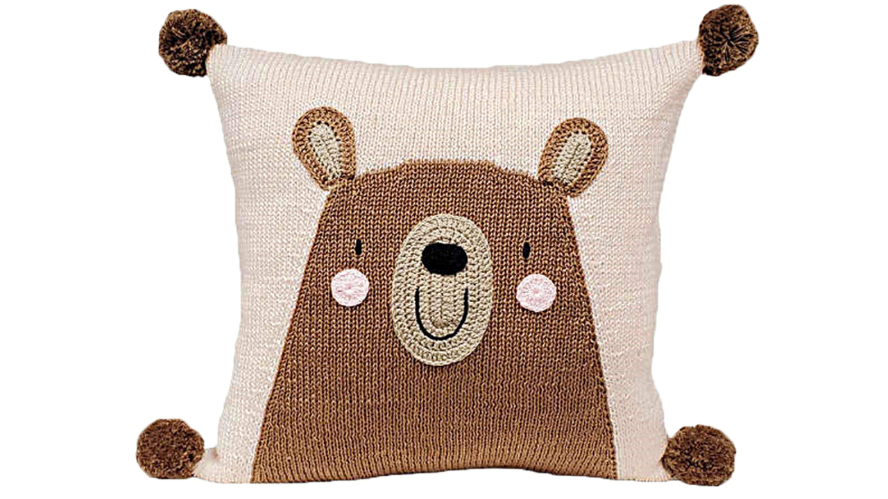 Organic Cotton Knitted Kids Cushion With Pom Pom - 40 x 40 CM