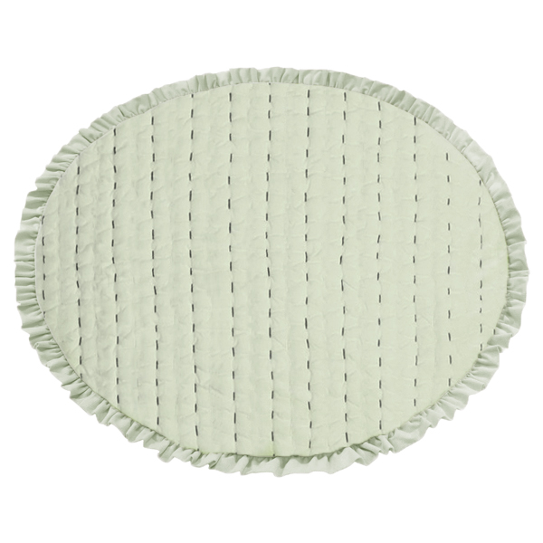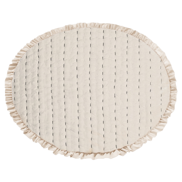 MAT-628 / Organic Cotton Double Muslin Play Mat With Hand Kantha With Frill 100x 100 CM