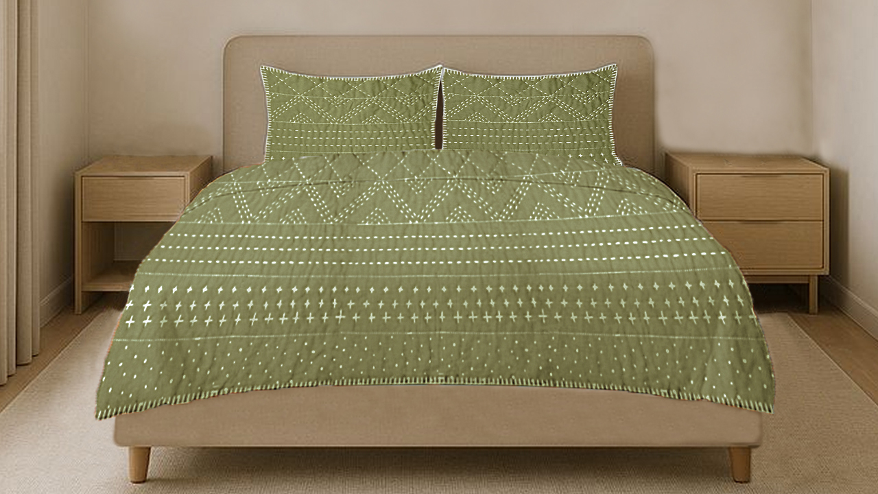 QU- 231 / Organic Cotton Quilt With Hand Kantha Work